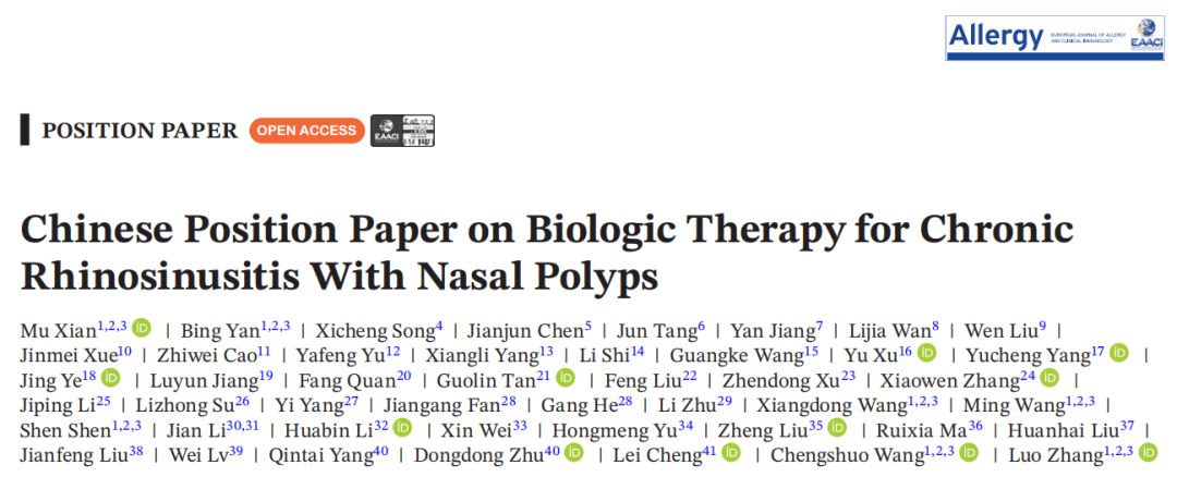 2025年5月,張羅教授團(tuán)隊(duì)牽頭制定的《生物制劑治療慢性鼻竇炎伴鼻息肉中國意見書》發(fā)表于過敏領(lǐng)域全球排名第一學(xué)術(shù)期刊Allergy,明確司普奇拜單抗的臨床價(jià)值,向全球介紹慢性鼻竇炎伴鼻息肉治療的“中國方案”。意見書指出,經(jīng)過適當(dāng)藥物和/或手術(shù)治療后仍未控制的重度慢性鼻竇炎伴鼻息肉成人患者適合接受生物制劑治療。