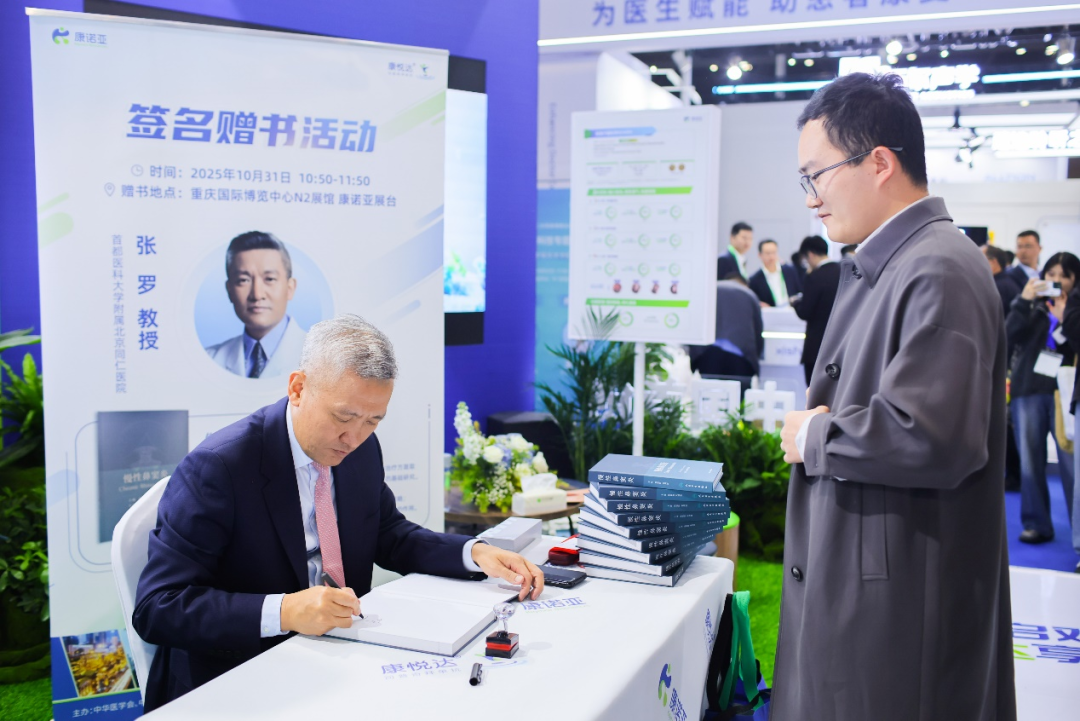 10月31日上午,首都醫(yī)科大學(xué)附屬北京同仁醫(yī)院張羅教授蒞臨康諾亞展臺(tái),為與會(huì)專家和代表簽名并贈(zèng)送了其編寫的學(xué)科權(quán)威書籍《慢性鼻竇炎》,面對(duì)面交流探討慢性鼻竇炎診療領(lǐng)域的最新進(jìn)展,活動(dòng)引發(fā)廣泛關(guān)注與參與。